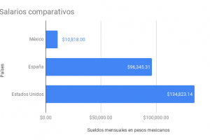 Para fines comparativos, hemos dividido estas cantidades anuales en sueldos mensuales. Todos los sueldos se convirtieron a pesos mexicanos utilizando el tipo de cambio del día de hoy.