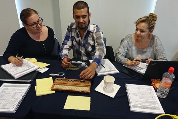 Durante el curso, además de ver lor requerimientos de la norma, se realizan practicas con patrones e instrumentos.