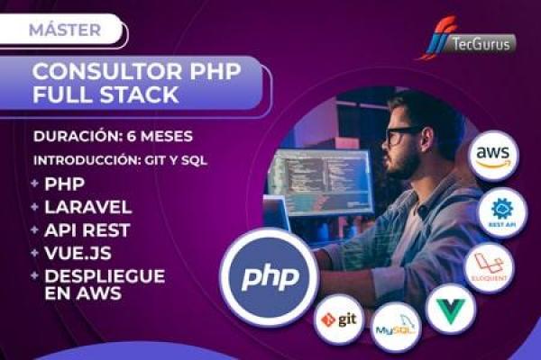 TecGurus, a través del catálogo de formaciones de Emagister te invita a cursar la Carrera Consultor PHP Full Stack, con la cual adquirirás los conocimientos y habilidades necesarias que te permitan crear un proyecto empresarial integrando MVC como parte del front end con Vue.js y programando el Back End con Laravel implementando el patrón de diseño MVC, Eloquent en la capa de datos, integrando seguridad con JWT