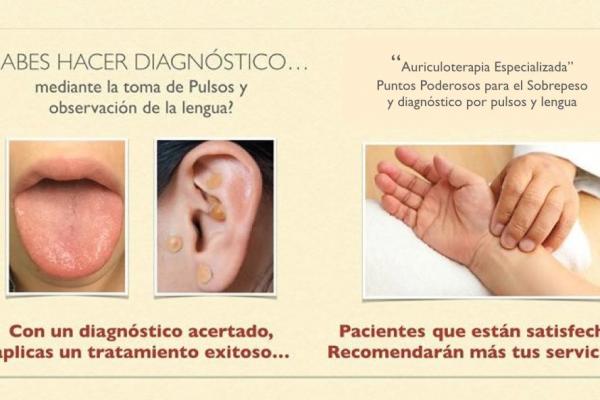Este curso Teórico-práctico está dirigido tanto a profesionales de la salud como al público en general y enfocado al control de peso y otras enfermedades, le garantiza a los alumnos que saldrán con conocimientos profundos de Auriculoterapia y Medicina China lo que les dará la capacidad de diagnosticar, elaborar un tratamiento y colocar correctamente los estímulos.