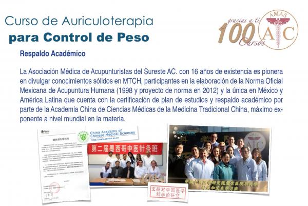 Este curso Teórico-práctico está dirigido tanto a profesionales de la salud como al público en general y enfocado al control de peso y otras enfermedades, le garantiza a los alumnos que saldrán con conocimientos profundos de Auriculoterapia y Medicina China lo que les dará la capacidad de diagnosticar, elaborar un tratamiento y colocar correctamente los estímulos. El centro cuenta más de 20 años de experiencia en el campo de la Medicina China y los métodos de enseñanza más prácticos y efectivos.