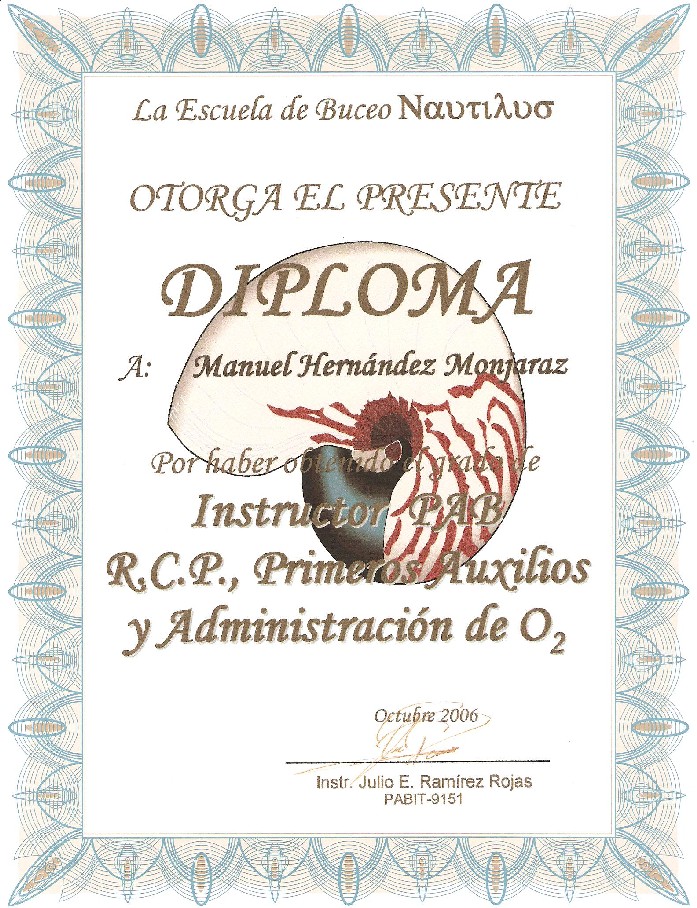 Competidor nacional en natación años 60's Instructor Naval de Buceo Instructor de Buceo CIMAS Monitor de buceo SSI