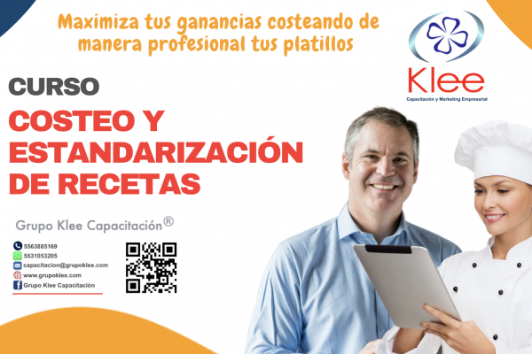 ¿Requieres más información? Grupo Klee Capacitación te ofrece este Curso de Estandarización, Costeo y Conversión de Recetas profesional, práctico y efectivo para aplicarlo con resultados inmediatos. Revisa toda la oferta formativa e inscríbete ya. ¡Te ayudamos a elegir tu mejor opción!