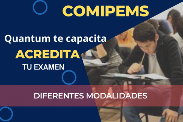 El centro de Capacitación Quantum México, el primero en capacitación de exámenes a Nivel Nacional, te invita a hacerlo a través de su curso "Quantum Curso de ingreso a Nivel Medio superior COMIPEMS" el cual tiene como objetivo preparar a alumnos que están por concluir el nivel medio superior para que incrementes el nivel de sus conocimientos y así apliquen de manera satisfactoria el examen COMIPENS de ingreso al bachillerato.