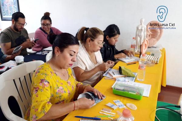El taller incluye: Kit básico (un modelo de oreja tamaño natural de silicón suave, 80 balines parche natural, 20 balines decorados, 10 balines decoración infantil, 20 tachuelas, 5 agujas pequeñas de acupuntura, pinzas, localizador manual, gasas alcoholadas, 3 lancetas y bolsita de terciopelo). Entregamos manual impreso y disco con material digital. Diploma de Asistencia y Formato DC-3 de la Secretaría del Trabajo y Previsión Social. Coffee break.Taller de Auriculopuntura