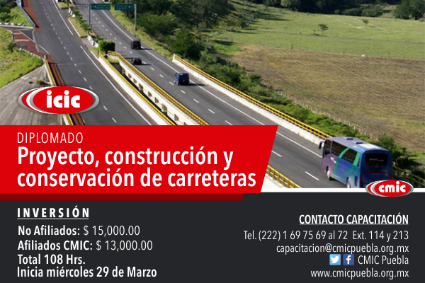 La Cámara Mexicana Industria de la Construcción Puebla te presenta, por medio del catálogo de Emagister.com.mx el diplomado en Construcción y Conservación de Carreteras